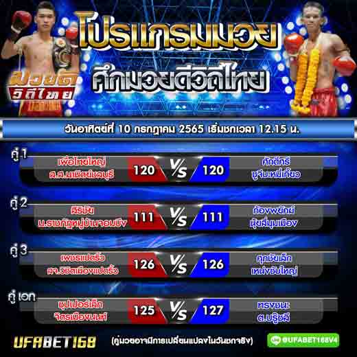 โปรแกรมการแข่งขัน มวยไทย ศึกมวยดีวิถีไทย