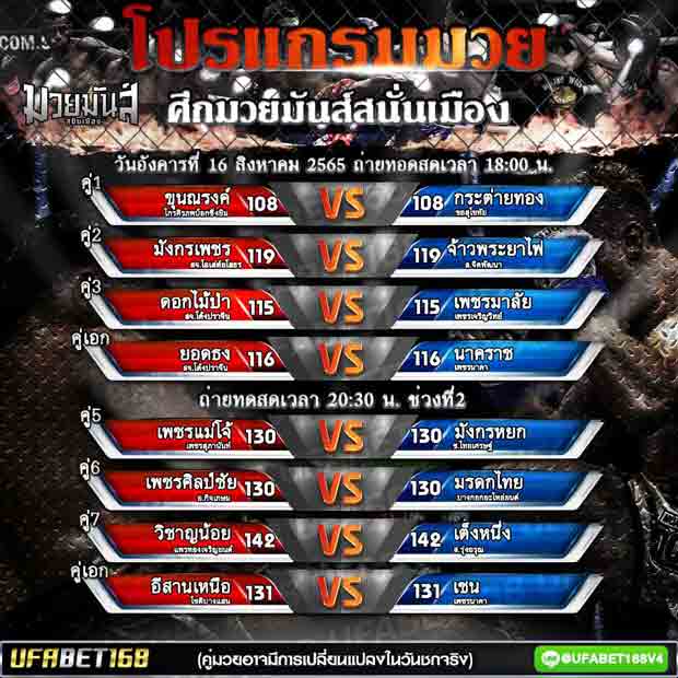 โปรแกรมการแข่งขัน มวยไทย ศึกมวยมันส์สนั่นเมือง
