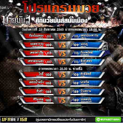โปรแกรมการแข่งขัน ศึกมวยมันส์สนั่นเมือง