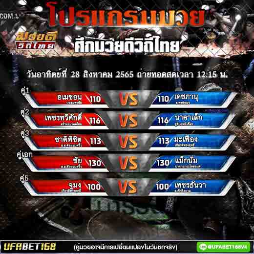 โปรแกรมการแข่งขัน มวยไทย ศึกมวยดีวิถีไทย