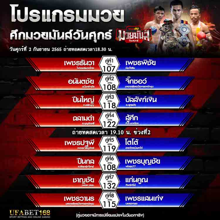 โปรแกรมการแข่งขัน มวยไทย ศึกมวยมันส์วันศุกร์