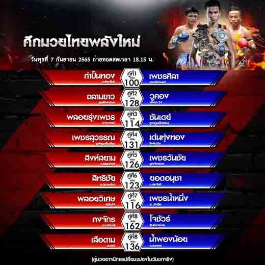 โปรแกรมการแข่งขัน ศึกมวยไทยพลังใหม่