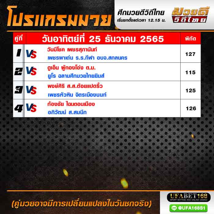 โปรแกรมการแข่งขัน มวยไทย ศึกมวยดีวิถีไทย