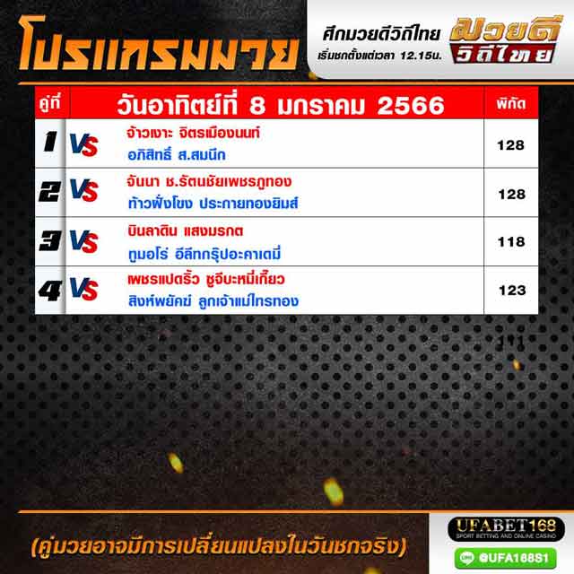 โปรแกรมการแข่งขัน มวยไทย ศึกมวยดีวิถีไทย