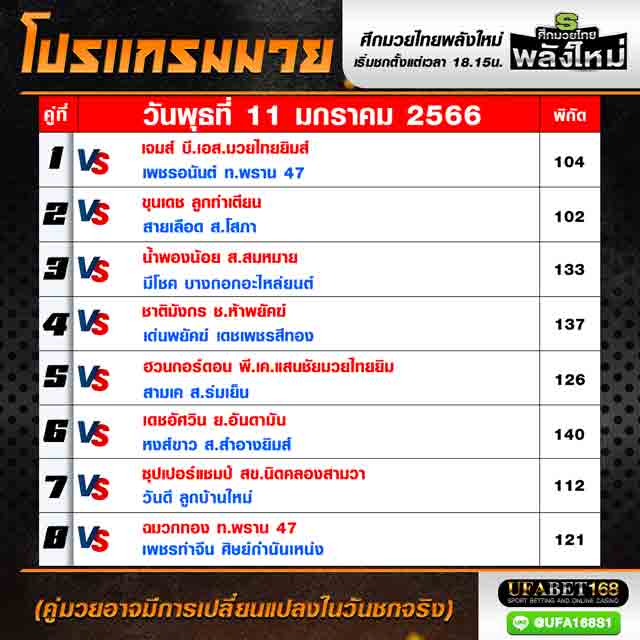 โปรแกรมการแข่งขัน มวยไทย ศึกมวยไทยพลังใหม่
