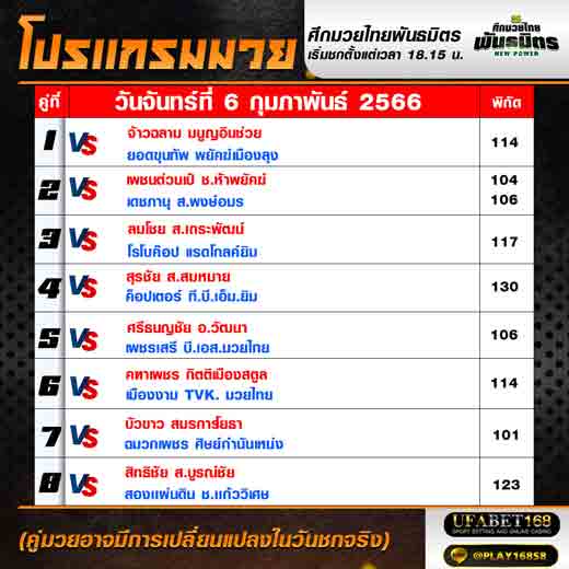 โปรแกรมการแข่งขัน มวยไทย ศึกมวยไทยพันธมิตร