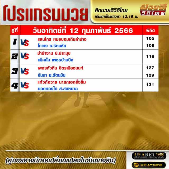 โปรแกรมการแข่งขัน มวยไทย ศึกมวยดีวิถีไทย