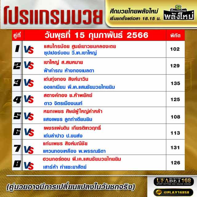 โปรแกรมการแข่งขัน มวยไทย ศึกมวยไทยพลังใหม่