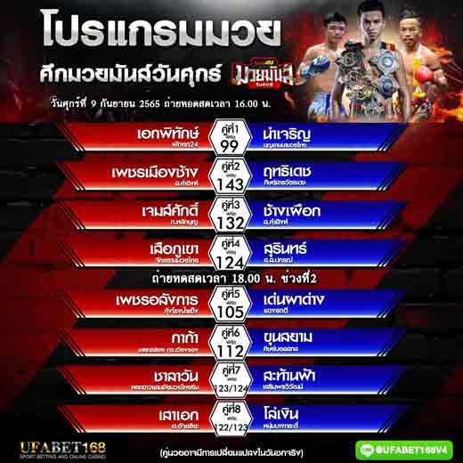 โปรแกรมการแข่งขัน ศึกมวยมันส์วันศุกร์