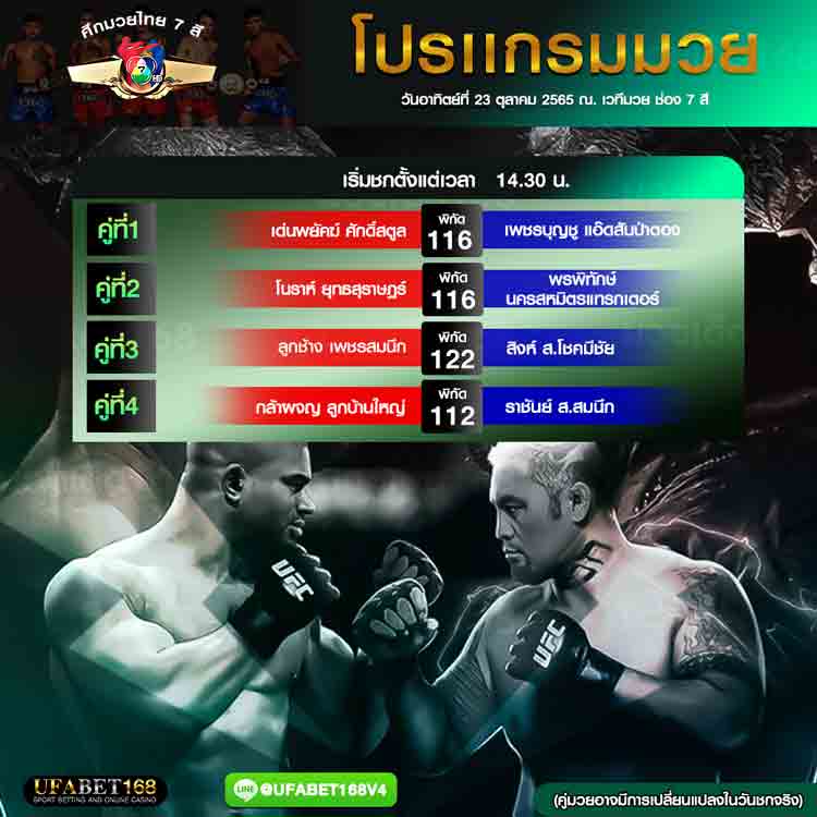 โปรแกรมการแข่งขัน มวยไทย ศึกมวยไทย 7 สี