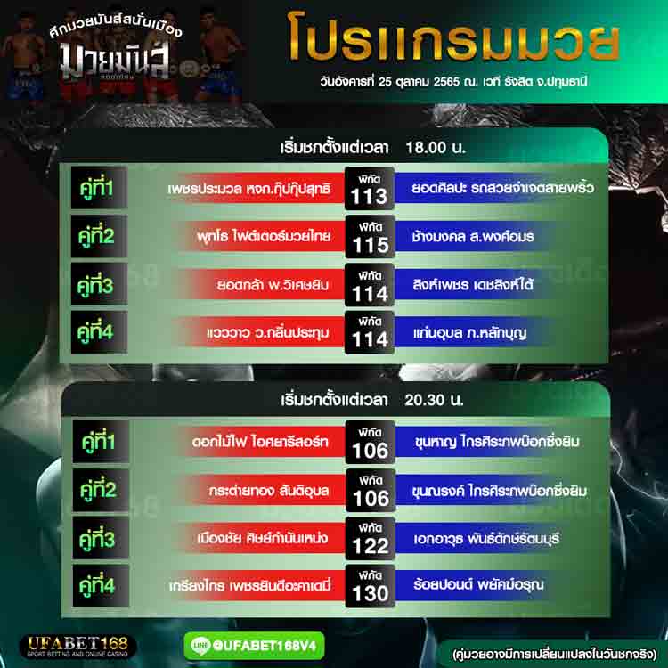 โปรแกรมการแข่งขัน มวยไทย ศึกมวยมันส์สนั่นเมือง