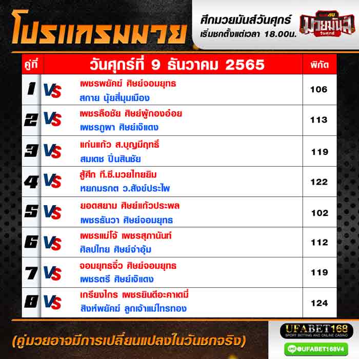 โปรแกรมการแข่งขัน มวยไทย ศึกมวยมันส์วันศุกร์